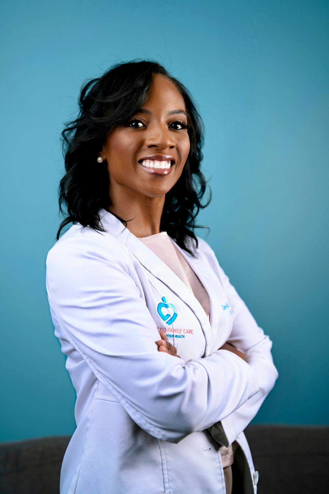 Dr. Jasmine Davis, DNP, APRN, FNP-C, is a dedicated Family Nurse Practitioner and Advanced Practice Registered Nurse with over 14 years of experience. She blends clinical expertise with a passion for innovation, education, and advocacy. A graduate of Wilmington University (BSN) and Widener University (DNP), Dr. Davis is committed to improving patient outcomes, preventive care, and serving underserved communities. She also served in the Delaware Air National Guard’s Aeromedical Evacuation unit, providing critical care in high-stakes environments. Beyond healthcare, she offers advanced skincare treatments and medical-grade products. When she’s not elevating healthcare standards, Dr. Davis enjoys quality family time, cherishing moments with her loving husband and two children.
